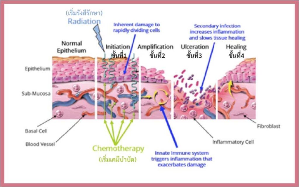 กลไกการเกิดภาวะเยื่อบุช่องปากอักเสบ ในผู้ป่วยที่ได้รับเคมีบำบัดหรือรังสีรักษา