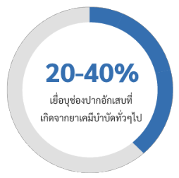 อุบัติการณ์: การเกิดเยื่อบุช่องปากอักเสบที่เกิดจาก ยาเคมีบำบัดทั่วๆไปประมาณ 20 - 40%